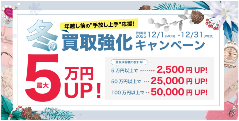 買取はキャンペーンを利用するのが鉄則ですが、私の場合はキャンペーンを利用し、(ネヴァーフル5万円保証キャンペーン)50,000円の買取価格でした!