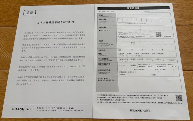 ブランドオフでは査定価格に了承後、提示した身分証明書記載の住所へお客さま専用の買取ID番号が記載された簡易書留を発送しています。