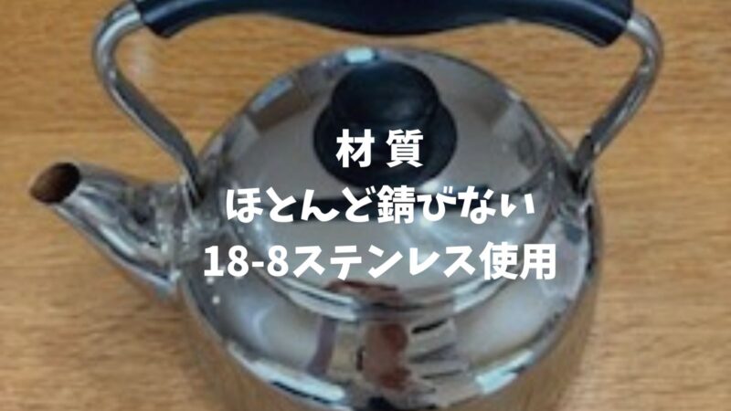柳宗理の「ステンレスケトル」の材質は、お手入れがしやすい18-8ステンレス素材を使っていて、さびなどの腐食に強いです。